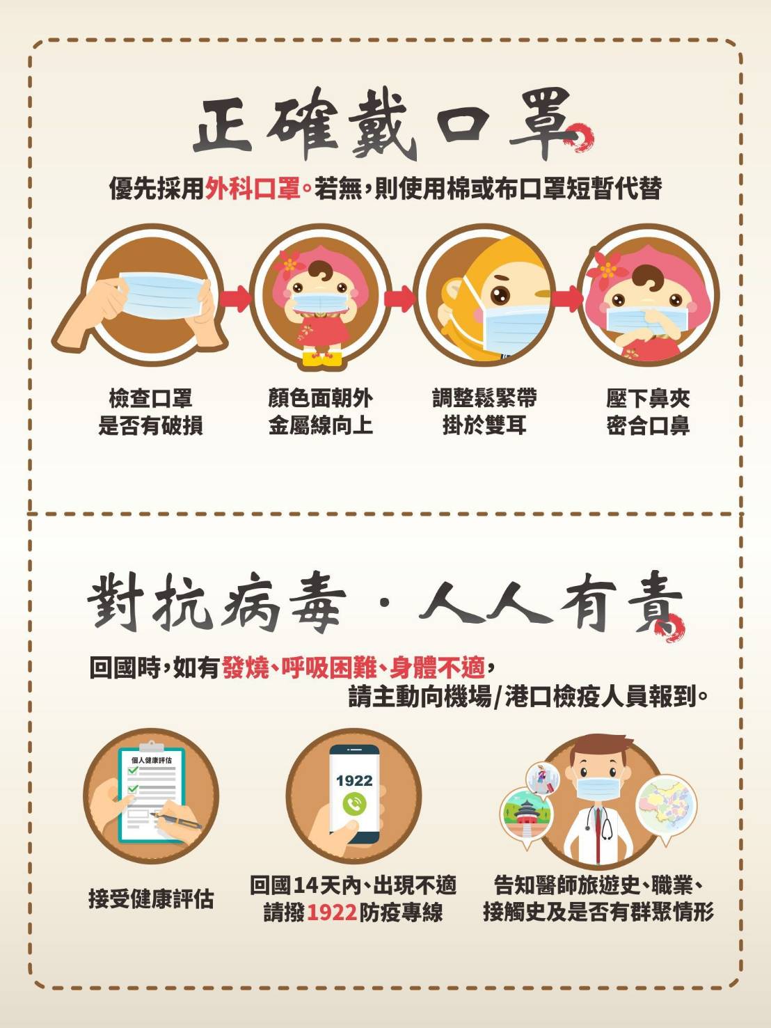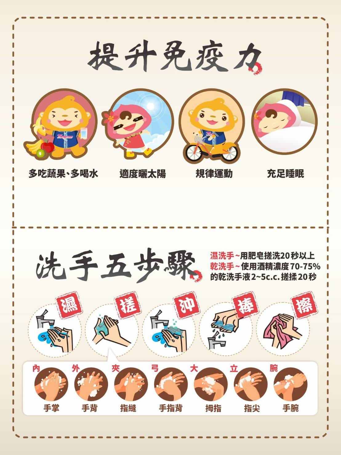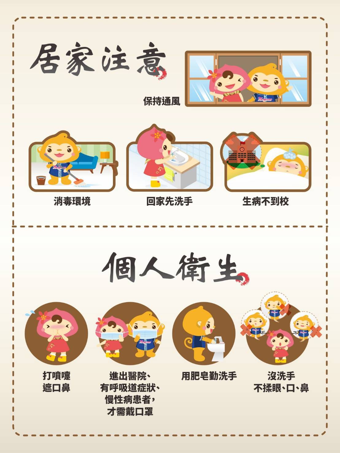 (一)校園防疫一「勤洗手」(二)校園防疫二「正確戴口罩」(三)校園防疫三「呼吸道衛生及咳嗽禮節」(四)校園防疫四「師生健康管理」(五)新冠肺炎校園防疫宣導影片